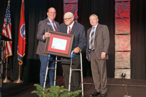 John L. Batey of Rutherford County is the recipient from District II. In operation since 1807, Batey Farms raises hogs, row crops and hay. They also have a retail store with pork products and a u-pick strawberry patch. He first got involved with Young Farmers and Homemakers, serving as the YF&H state president and on the national committee. He’s also spent 60 years on the Rutherford County Board of Directors, five of those as county president.