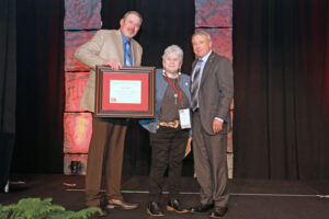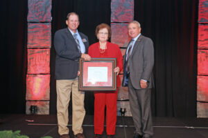 Cathy Campbell of Carter County is the recipient from District V. The Campbells started a dairy in 1974 and today still have a cow-calf operation. In 1988, Cathy was first elected to the Carter County Farm Bureau Board of Directors. She had been active with the Farm Bureau Women and because of her clear leadership qualities, she was elected county president in 1990 and remained there until 2019. *Mike Nidiffer, Carter County president, pictured accepting the award on Cathy’s behalf.