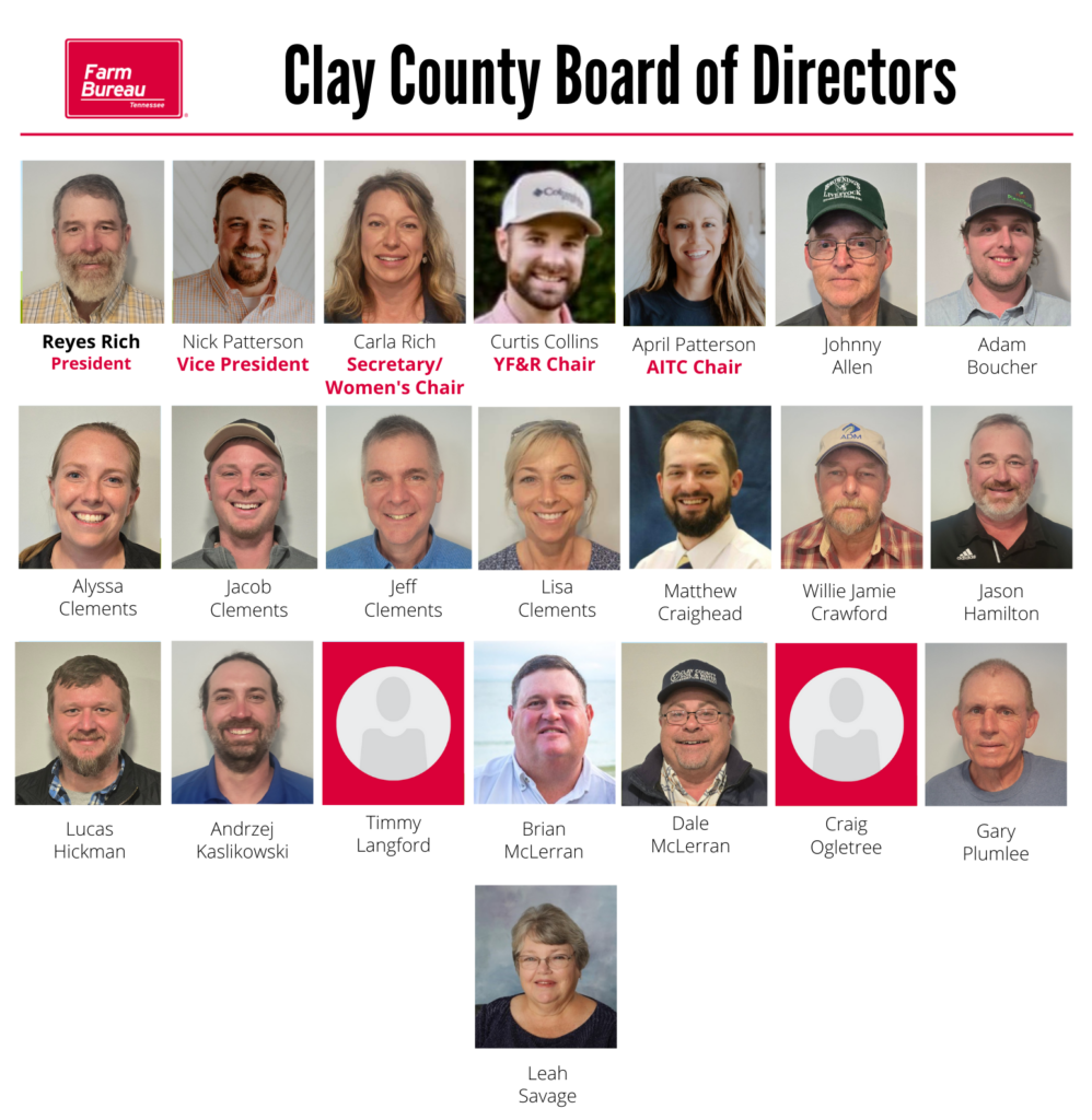 Home > County Office Clay Nov 20, 2016 | Tennessee Farm Bureau County Secretary: Melissa Brannon Click Here to Find a County Office