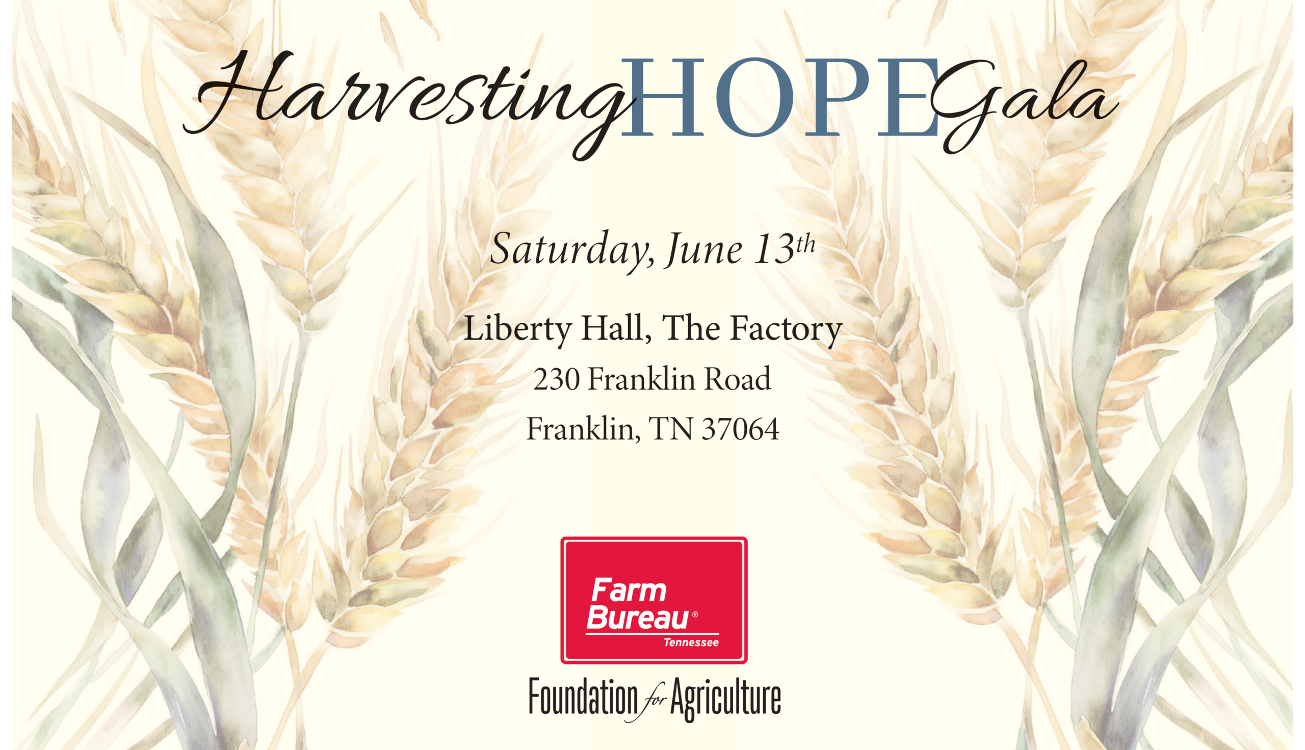 We look forward to hosting you at our Inaugural Harvesting Hope Gala, supporting the Tennessee Farm Bureau Foundation. Register for a table and other sponsorship opportunities by clicking the link below.
