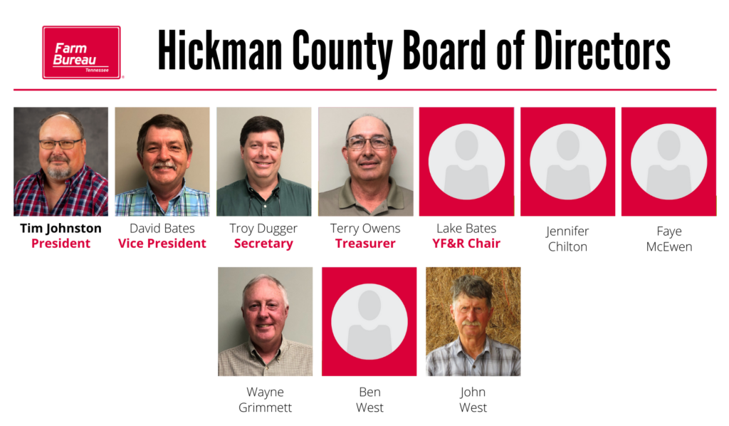 Home > County Office Hickman May 20, 2016 | Tennessee Farm Bureau County Secretary: Brittany Rogers Click Here to Find a County Office