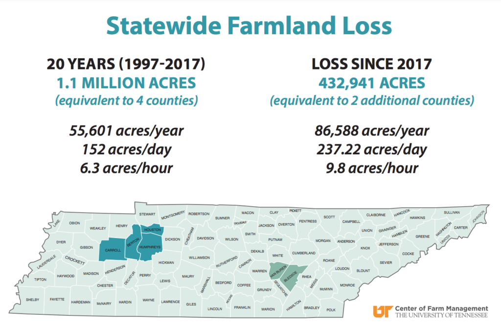 Tennessee continues to lose crucial farmland to growth and sprawl. Tennessee Farm Bureau has worked with both the University of Tennessee Institute of Agriculture and the Tennessee Department of Agriculture to find potential solutions to slow the loss of farmland, as well as provide resources for smart growth and expansion. Legislation is expected to be a part of Governor Lee’s administrative package which would establish a farmland preservation fund to allow landowners options for future decision making when it comes to their land.