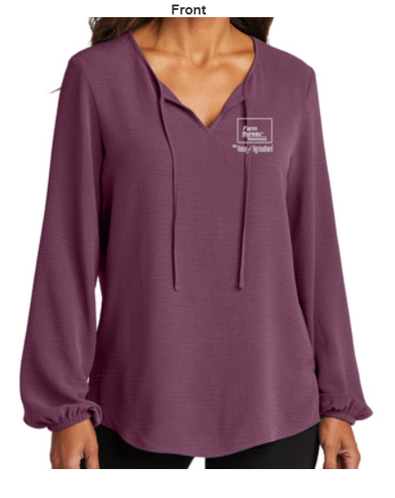 A fresh neckline with tie gives this comfortably flowy blouse a sophisticated look.