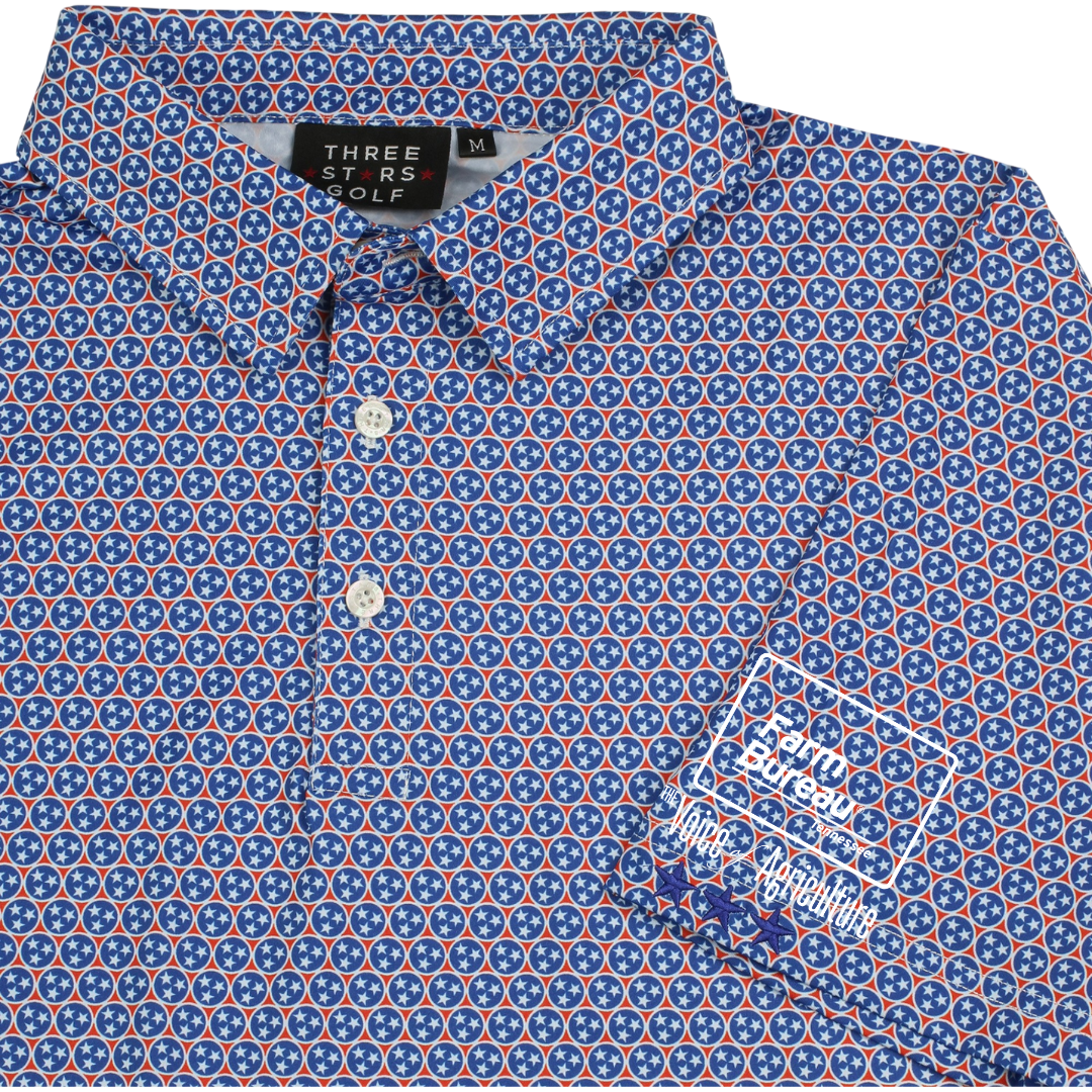 The TriStar Flag Polo is like the state flag took a road trip across your shirt – loud, proud, and more Tennessee that a tailgate party.